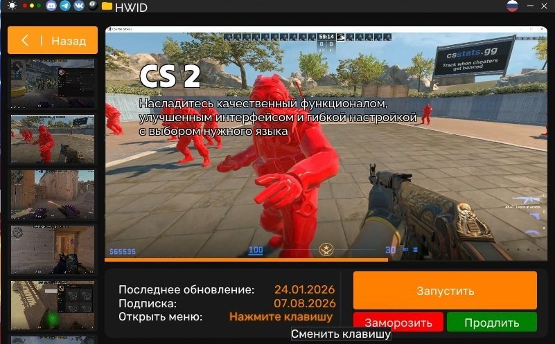 16.11.2025 Переделан Aimbot - Vac Live - BYPASS! ✅ Переделан Recoil Control System - Vac Live - BYPASS! ✅ Переделан Triggerbot (Даже с задержкой 0мс)- Vac Live - BYPASS! ✅ Включили перчатки и ножи. Исправлена работа SkinChanger. Исправлен баг, когда противник за стеклом считался невидимым. Временно отключены Bunnyhop, AutoStrafe. SafeMode (Безопасный режим) теперь сохраняется в файле настройки чита (не в конфиге), так же теперь он ограничивает значения Recoil Control Assist и Aimbot до безопасных значений. Обновлены стандартные настройки. Описание функционала Aimbot: - Flash check - аимбот не будет работать когда вы ослеплены - Smoke check - аимбот не будет работать на противников за дымовой гранатой - Jump check - аимбот не будет работать когда вы подпрыгиваете - Nearest hitbox - аимбот будет пытаться выбрать ближайшую кость из списка - Dynamic speed - аимбот будет менять скорость наводки в зависимости от того на сколько вы ближе или дальше от противника - Select hitbox - хитбокс в который будет целиться аимбот, если включен Nearest hitbox, вы можете выбрать от 1 до 6 хитбоксов, которые будет сканировать аимбот и пытаться целиться в ближайший - FOV - круг возле прицела, который будет захватывать противников, так же теперь он динамически меняется когда вы приближаетесь к противнику - Recoil control - контроль отдачи - Speed - скорость наводки аимбота Если включена функция Dynamic speed, у вас появятся 2 значения Speed - Speed closer to the enemy - скорость наводки аимбота когда вы близко к противнику - Speed away from the enemy - скорость наводки аимбота когда вы дальше от противника - Z-axis correction - коррекция хитбокса по вертикали - Delay after kill - время на которое отключится аимбот после убийства цели - Delay before shot - время на которое аимбот перестает стрелять, выстрел происходит когда выйдет время задержки или когда прицел будет очень близко к противнику- 21 replies